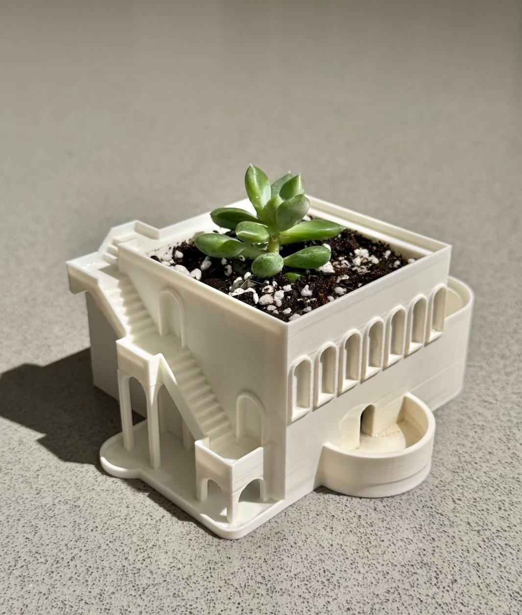 第一款是 “多色卡通摆件”(比如小熊造型的收纳盒):小熊的耳朵用棕色,身体用白色,鼻子用黑色,打印出来的颜色和预览图几乎一致,没有色差;小熊脸上的腮红是直径 5 毫米的小圆点,拓竹 A1 也能清晰打印出来,没有模糊成一团,摸起来表面很光滑,没有凸起的层纹。