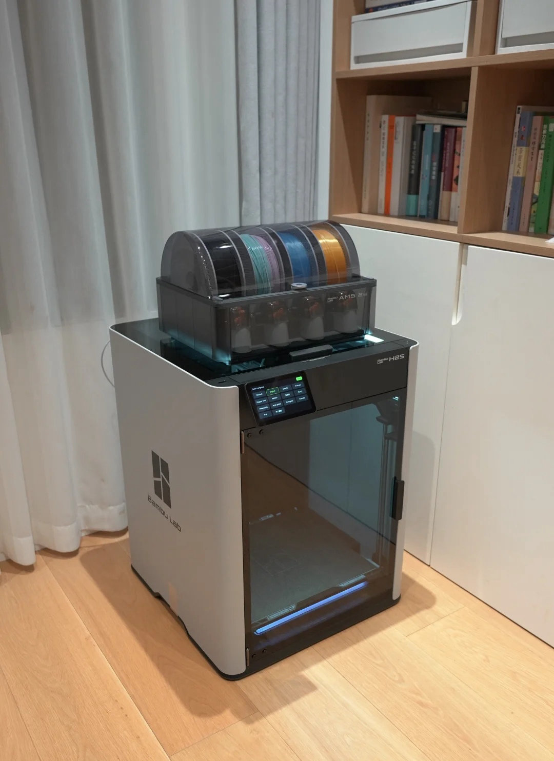 通过搭配拓竹专属的多色打印组件(如 AMS 耗材切换系统),拓竹 H2S 可实现多色打印,满足用户对彩色模型的创作需求,让打印作品更具视觉表现力。但需注意,H2S 不支持 AMS 烘干功能,若使用 PLA、TPU 等易受潮耗材,需提前通过外部烘干设备对耗材进行干燥处理,避免因耗材受潮导致的打印断丝、气泡等问题。
