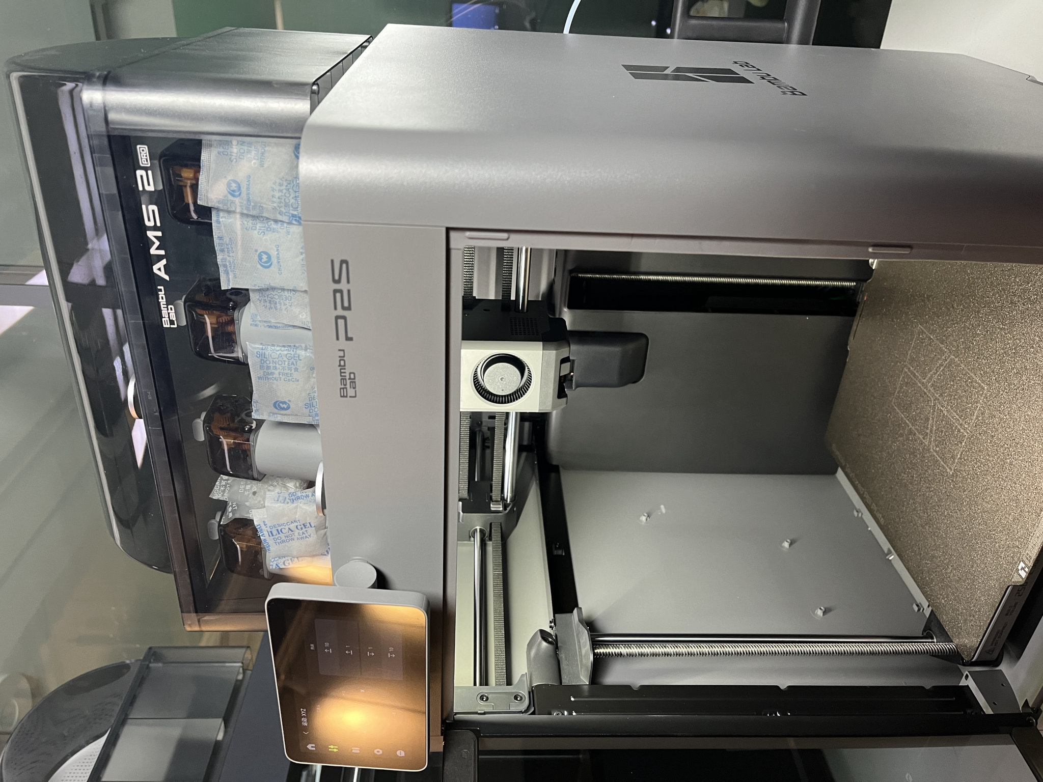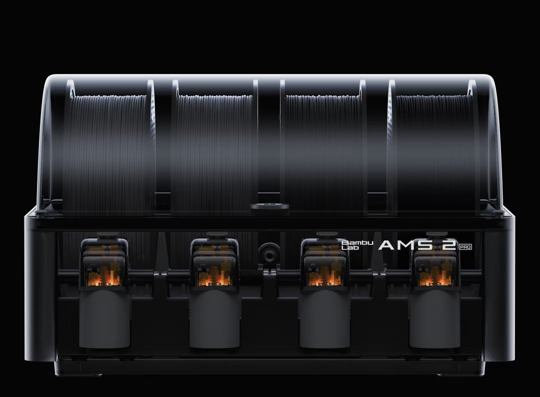 P2S最厉害的地方,是能适配不同用户的需求。不管你是刚入门的小白,还是靠打印接单的农场主,它都能接住需求,这在中端机里太少见了。新手不用怕调平——全自动调平技术,开机就能用,“首层必成功”不是吹的,再也不用像以前那样垫A4纸一点点试。PEI弹簧钢板也是老熟人了,加热时模型粘得牢,冷却后一掰就下来,再也没有“模型粘床取不下来,硬掰把热床搞坏”的尴尬。内置的活性炭滤芯还能吸掉打印时的味道,放书房用也放心。创客们最爱的多色打印也安排上了。可选配的AMS 2 Pro系统,能自动上下料、识别耗材,最高支持20色打印,还自带65°C智能烘干功能,打印 hygroscopic材料再也不用单独买烘干机。我们打印四色小船时,换料顺畅,颜色分界线清清楚楚,1小时04分钟就搞定,比老机器快了近20分钟。