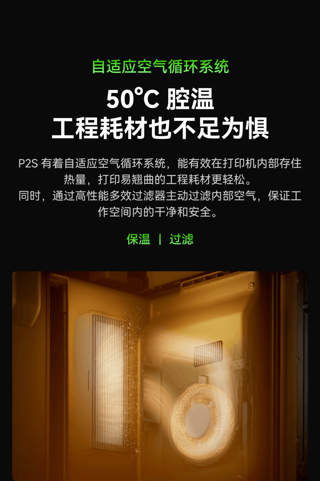 在打印细节上,拓竹 P2S 新增的 “静音打印” 模式也很加分。之前有些 3D 打印机工作时噪音较大,要是放在家里书房或办公室,很容易影响周围人。而拓竹 P2S 优化了内部电机和风扇的运行结构,开启静音模式后,机器运行时的声音变得很轻柔,就算在旁边办公、学习,也几乎不会被打扰。这一点比早期的拓竹 H2D 有了明显提升,让 3D 打印能更和谐地融入各种场景。