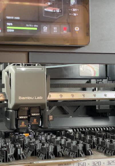 普通机型的精度依赖机械校准,而拓竹 H2D Pro 标配了超高精度视觉编码板。它用 5 微米分辨率的光学测量技术盯着工具头运动,校准后能实现 50 微米的运动精度 —— 这相当于半根头发丝的粗细。